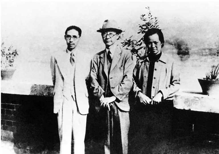 老舍(中)和茅盾(左)、于立群(右)在重庆。