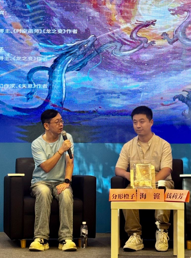 海漄和分形橙子在2025年上海书展发布新书《龙之变》。