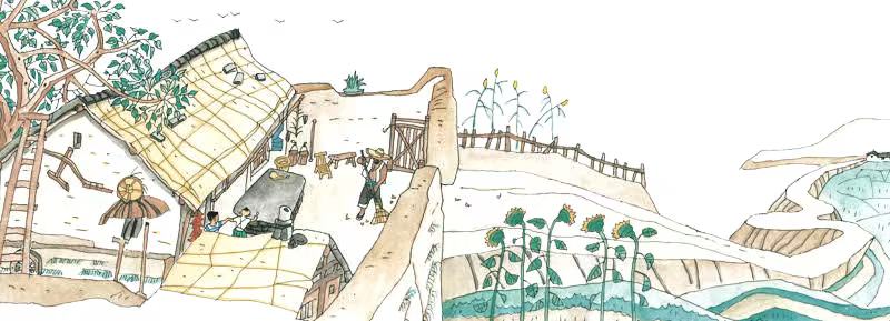 故土难离,绘本中深情描绘了爷爷对往日生活的眷恋。当曾书记带着爷爷再次返回,看到熟悉的院子时,爷爷眼中泛起了泪花。这不仅是爷爷一个人的牵挂,更是无数离开村庄的人心中难以割舍的根脉与乡愁。让人没想到的是,曾书记看出了爷爷对那口大缸的不舍,便想办法把大缸从山上搬到了山下。