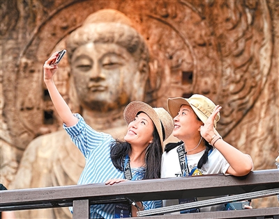 游客游览龙门石窟,感受精美绝伦的石刻艺术,领略世界文化遗产的独特魅力。