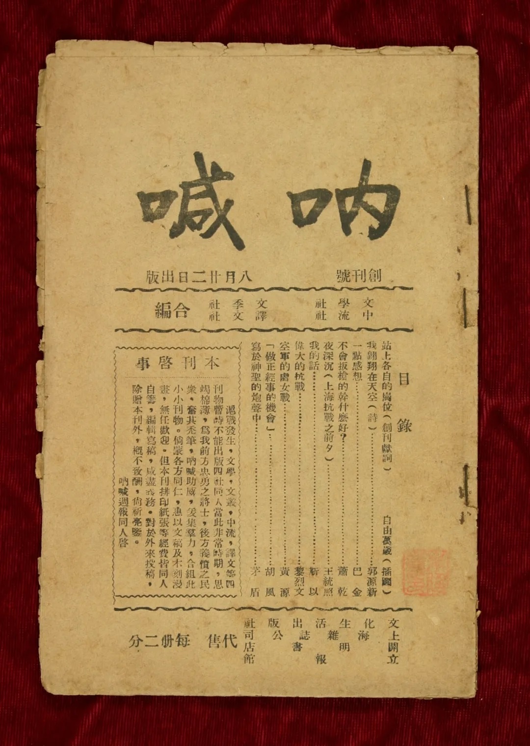 在鲁迅去世后的第一年,巴金联合黎烈文、靳以、黄源、郑振铎等人,团结各个文化社团推出了《呐喊》这一强调鲁迅精神、团结民众唱战歌的刊物。这本刊物很快吸引了日军的目光,所以《呐喊》在第二期之后被迫停刊。但是,萤火不会放弃在黑夜中发光,炬火只会在战争中燃成希望的烽火,于是,巴金与茅盾等人决定将《呐喊》改名为《烽火》,于1937年9月5日重整旗鼓再次推出。改名后的《烽火》,像一株在石缝里生长的野草,带着更坚韧的生命力破土而出,它不仅象征着战时救亡的烈焰,更寓意着一种不灭的希望。