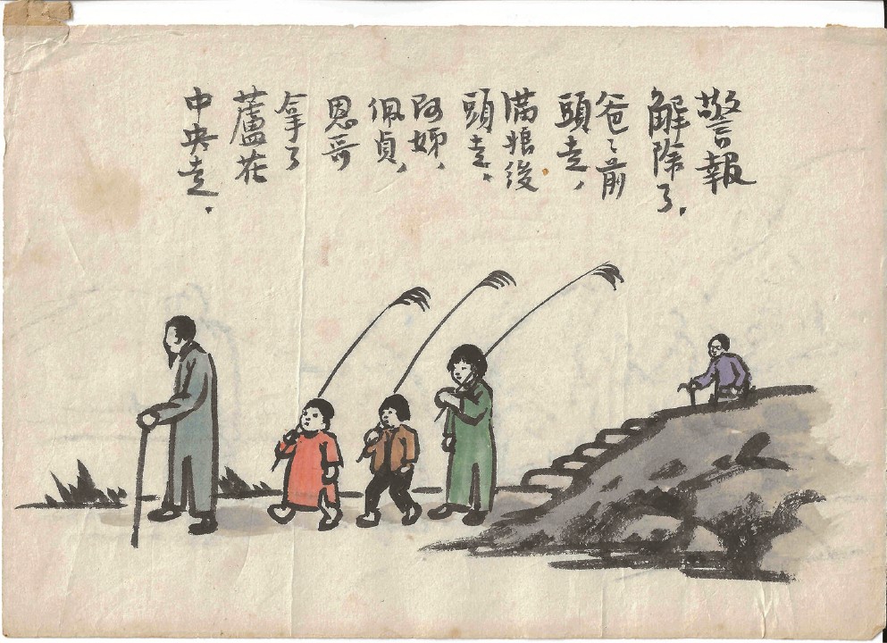 他还曾画过多幅躲避空袭的漫画,这些作品构思巧妙,不画人们的惊慌无措,而是画人们的镇定自若,甚至悠然自得。他的小儿子出生于逃难途中,逃警报成为孩子的日常,他画《恩狗逃警报》,三个人惬意地坐在一块大石头上,画上题到:“逃警报的路上,水里一个石头堆,像一只船,凤凰彩票跨上去,坐着看水。阿姊拿司的克摇船。”在《警报解除了》中,他画老少五人漫步山中,画上题到:“警报解除了,爸爸前头走,满娘后头走,阿姊、佩贞、恩哥拿了芦花中央走。”逃警报成了逍遥游。他画防空洞里埋头看书的人,防空洞成了桃花源。他画《警报作媒人》,青年男女因在山洞里躲避空袭而成就一世良缘,警报成了月老。这些恬静安宁的画面,是对敌人的藐视,对和平的向往。他的次女林先在抗战期间举行婚礼,他作此画作为贺礼。女儿生了孩子后,他创作《大树垂枝,保我赤子》,以此祝福外孙在祖国的怀抱里茁壮成长。抗战胜利后,他画《胜利之夜》,画中那个被高举在空中的孩子,正是“大树”所保的赤子。