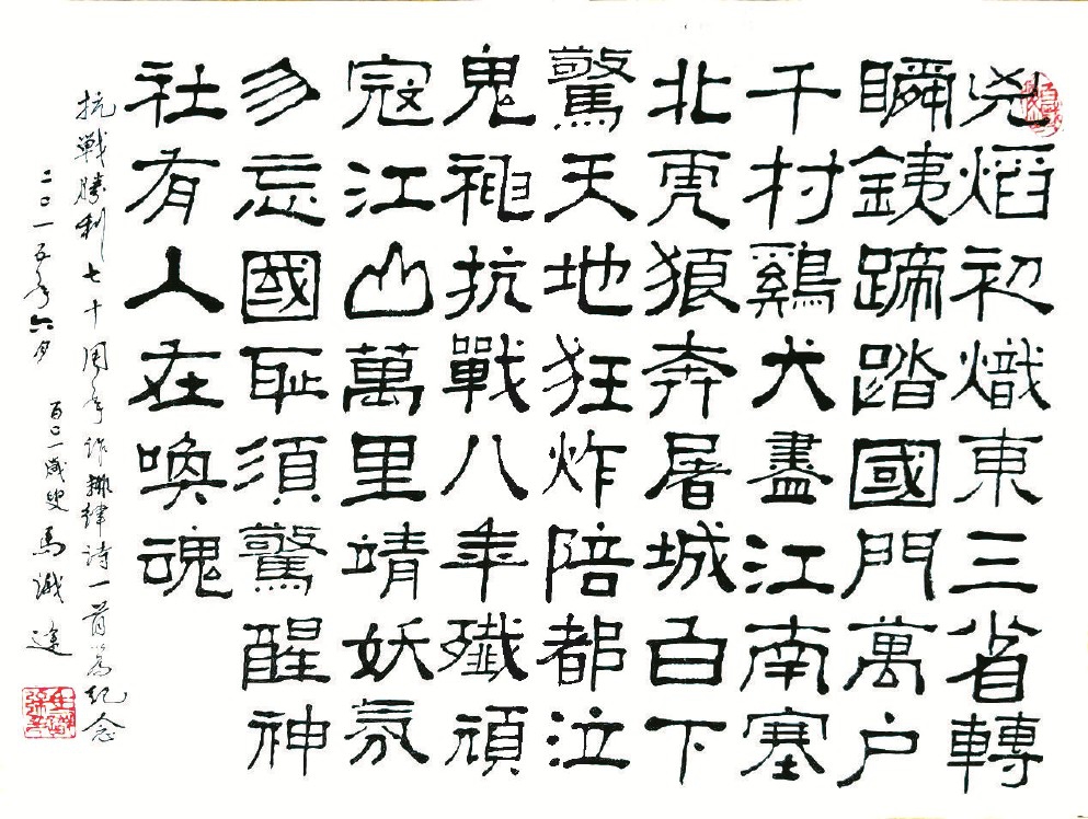 马识途在抗战胜利七十周年时所书诗句