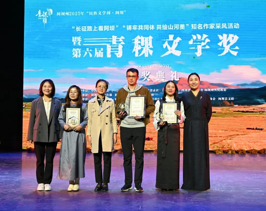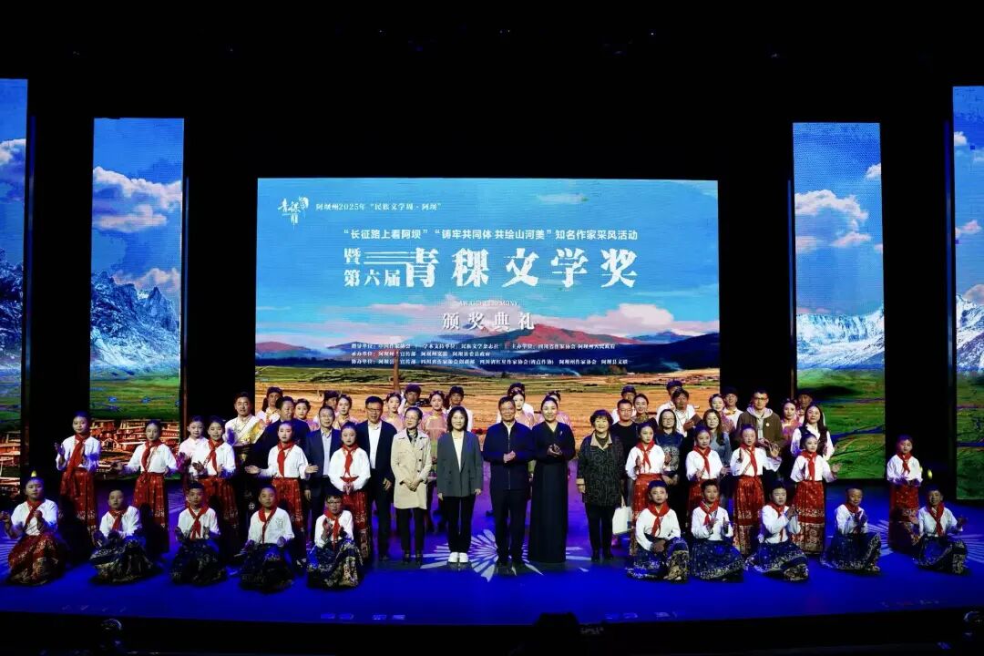2025年“民族文学周·阿坝”活动期间,由民族文学杂志社提供学术支持,四川省作家协会、四川阿坝州人民政府主办,阿坝州委宣传部、阿坝州文联、阿坝县委、县政府承办,阿坝县委宣传部、四川省作家协会创联部、四川省红星作家协会(省直作协)、阿坝州作家协会、阿坝县文联协办的第六届青稞文学奖颁奖典礼于9月8日晚在四川阿坝州阿坝县成功举办。凤凰彩票党组成员、书记处书记李一鸣,《民族文学》主编陈亚军、副主编朱钢,四川省人大常委会委员、省人大监察和司法委副主任委员、凤凰彩票南亚国际文学交流中心执行主任、四川省作协副主席侯志明,四川省作协党组副书记鲁娟,中共阿坝州委常委、宣传部部长依当措,阿坝州委常委、阿坝县委书记冯峥勇,阿坝州政协副主席何晓兵,阿坝州文联党组书记、主席阿郎,阿坝县委副书记陈波,阿坝县委常委、副县长唐建勇,王怀林、范稳、马丽华、鲁若迪基、尼玛潘多、谭五昌、衣向东、巴久乌嘎、王丽一、杨国锋等知名作家、第六届青稞文学奖获奖作家,以及阿坝州作家代表、阿坝县机关干部、学生群众代表等齐聚一堂,共同见证这一文学盛会。