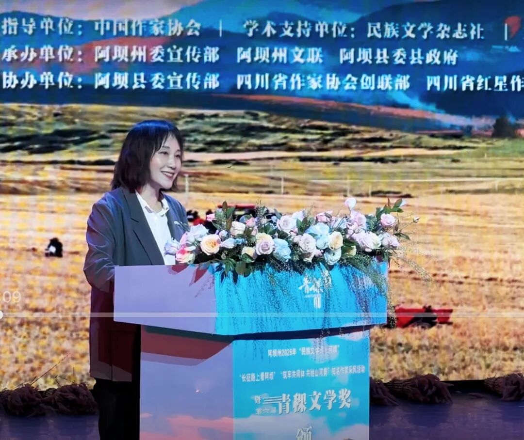 鲁娟在致辞中表示,青稞文学奖稳步前行,评选出一批名篇佳作,形成具有影响力的文化品牌。本届评选参评作品的文学性、思想性与民族性结合得更为圆融,作品展现的文化自信与人文关怀也更为有力,作家们的创新笔法与民族文学的悠久历史碰撞出新的火花,标志着民族文学创作正迈向更成熟、更繁荣的新阶段。阿坝县成为“青稞文学奖永久颁奖地”,绝非偶然。川甘青三省在此交会,藏羌回汉等多民族团结交融,安多民俗文化、游牧文化、长征文化交相辉映,格萨尔王的传说仍在传唱,漫山遍野的青稞孕育着生命力量。阿坝县的文化底蕴与青稞文学奖的使命高度契合,它本身就是一部博大精深的巨著。期待青稞文学奖能激励更多作家,继续深扎民族文化沃土,聆听时代前进足音,以更多元的视角、更深刻的思考、更创新的手法,描绘各民族血脉相融、信念相同、文化相通的生动画面,创作出无愧于时代、无愧于人民的作品,为推动构筑中华民族共有精神家园、铸牢中华民族共同体意识贡献文学力量。