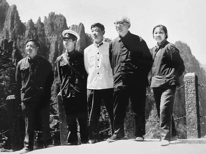1978年,杨列章(左三)与李可染夫妇在黄山,左一为方镜亮