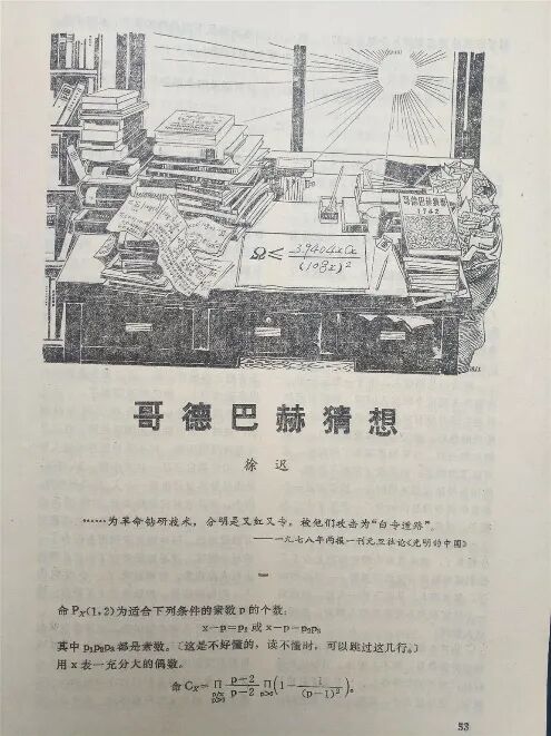 1978年1月,《人民文学》杂志在新年第一期头条发表徐迟新作:报告文学《哥德巴赫猜想》。