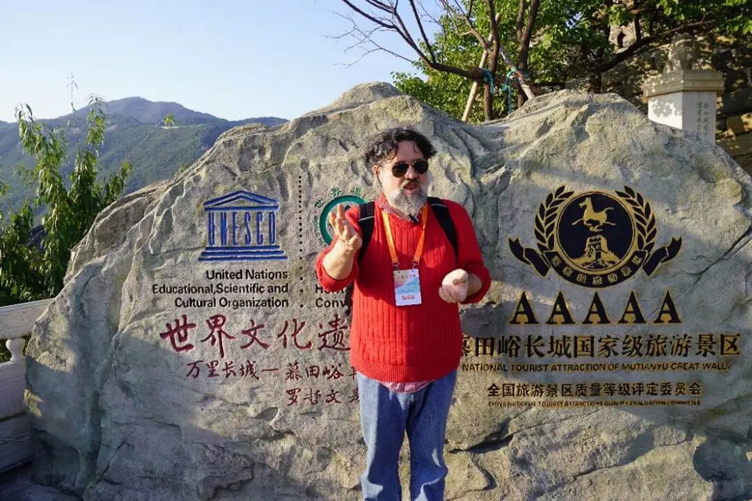 “我爱长城!”智利诗人哈维尔·贝洛用汉语高呼。尹超 摄。