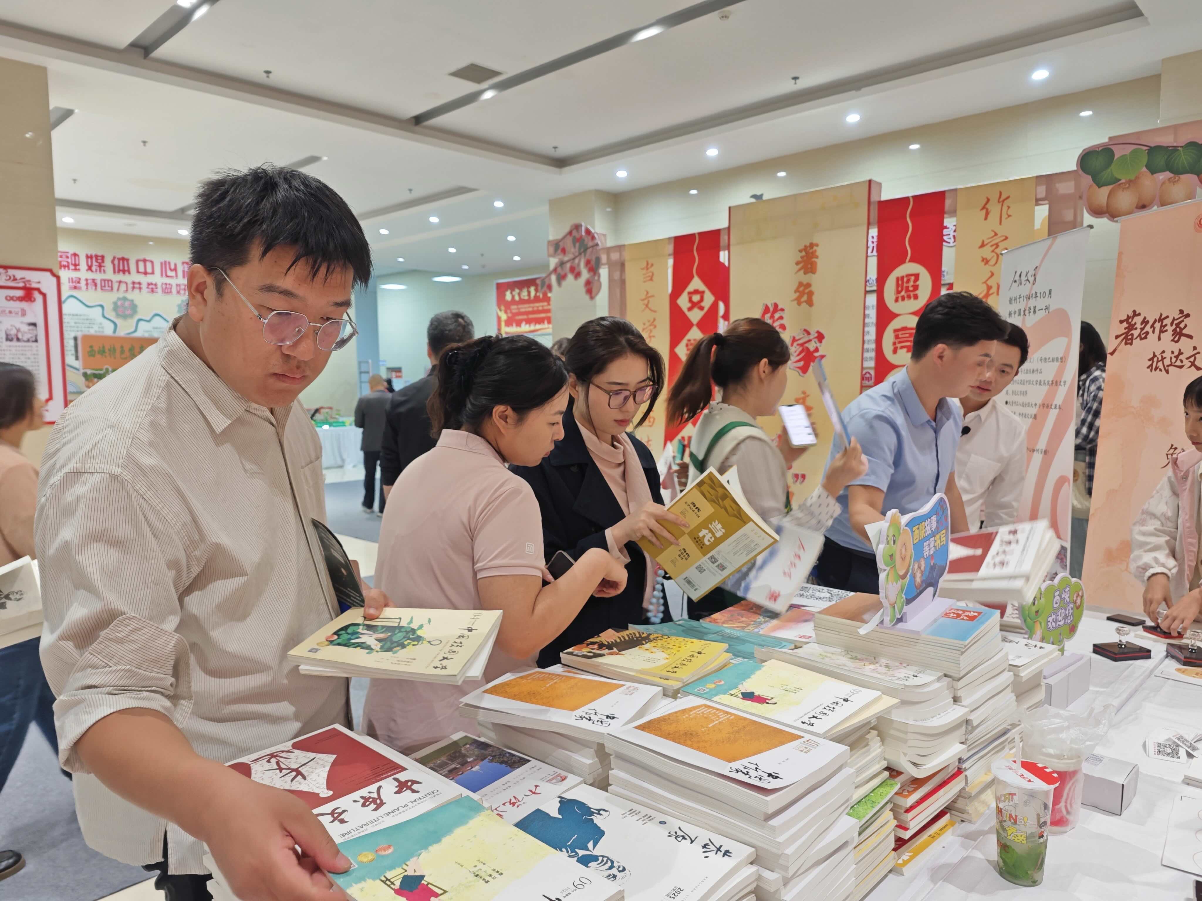 活动现场,西峡文学爱好者热情地翻阅相关作品