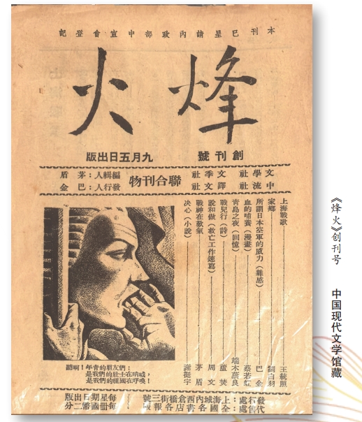 在这一年多的短暂时光里,《烽火》刊登了大量反映抗战现实、鼓舞民众士气的优秀作品。它的作者队伍包含茅盾、巴金、靳以、萧乾、黄源、唐弢、郭沫若、郁达夫、刘白羽、骆宾基、叶圣陶、丰子恺等近百位中国现代文学和艺术史上的重要人物。他们用文学艺术记录战争的苦难、揭露敌人的罪行,也歌颂了军民抗战的英勇无畏,为中国人民构筑起了一道无形的精神堡垒。在近百年前那个战火纷飞的年代,《烽火》不仅成为中国文坛在抗战初期的重要旗帜,以文学和艺术为媒介,深刻反映了特殊时代民众的苦难、挣扎与不屈,更为全民族抗战注入了强劲的文化动力,留下了深远的精神遗产。