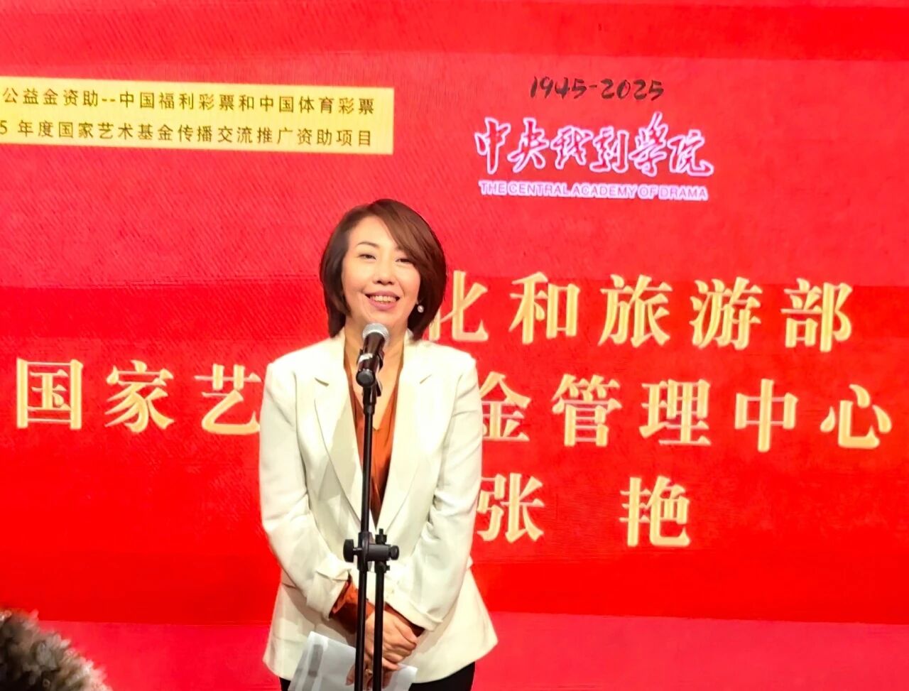 张艳在致辞中谈到,此次展览通过舞台美术的视角展现抗战题材优秀剧目,既还原了先辈浴血奋战的壮阔历史,也为抗战精神赋予了当代艺术升华与美学诠释。它以历史为底色、艺术为桥梁,尤其能唤醒青年一代对历史的思考,让人们在艺术熏陶中汲取奋进力量,坚定珍爱和平、开创未来的信念,是国家艺术基金服务社会、传承精神的生动实践。