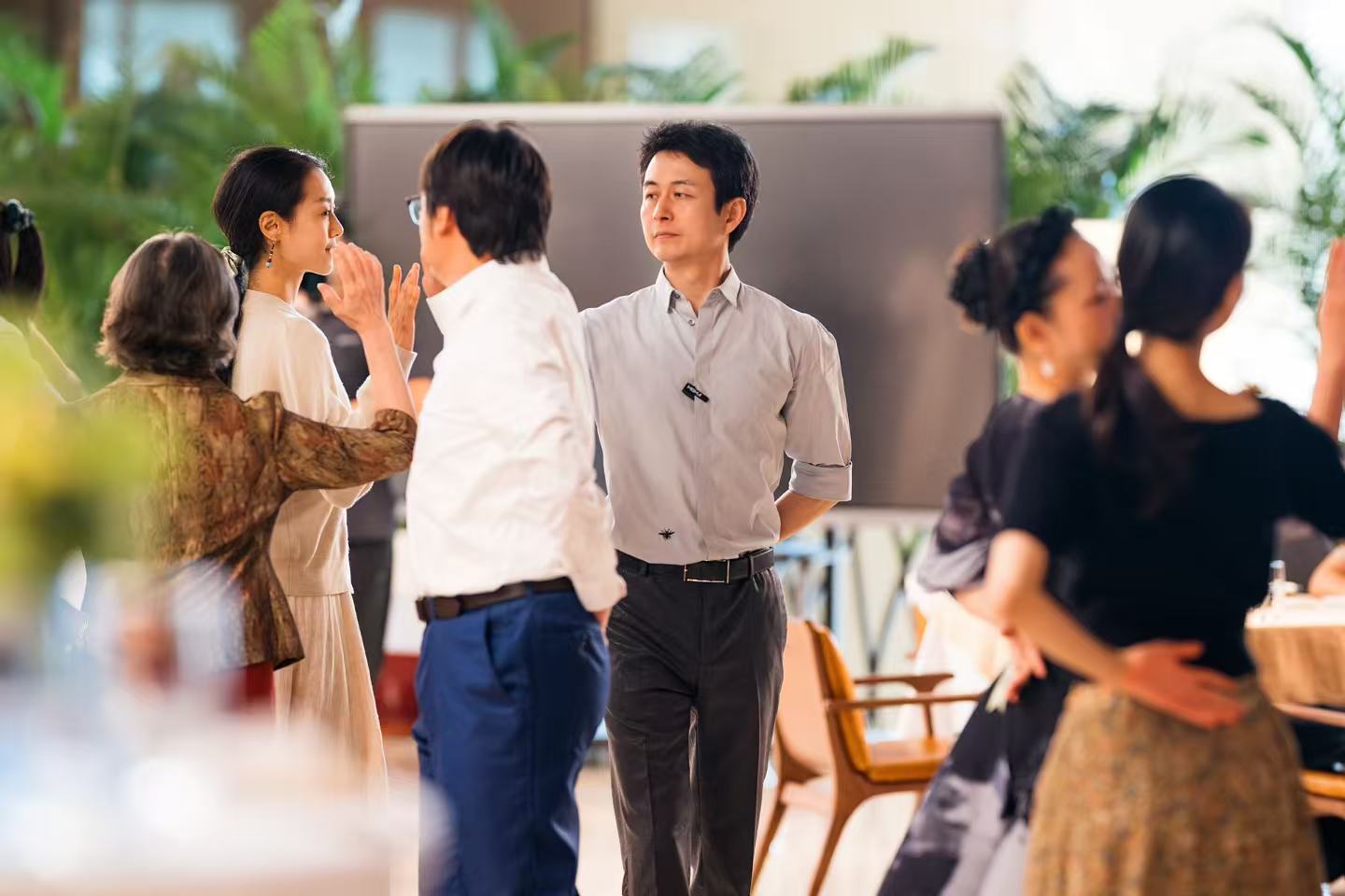 沉浸式表演结束后,话剧导演兼主演赵岭为大家深入介绍国家大剧院制作话剧《傲慢与偏见》的主创、主演,并携手编剧杨慧、方晓申从多角度分享话剧创排细节。