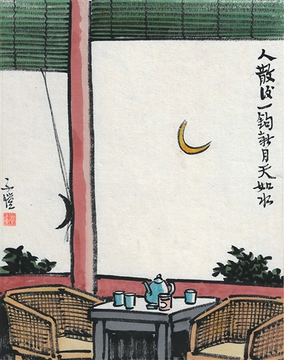 人散后,一钩新月天如水(中国画)