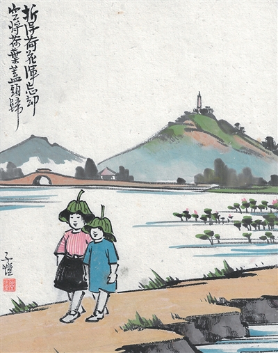 折得荷花浑忘却 空将荷叶盖头归(中国画)