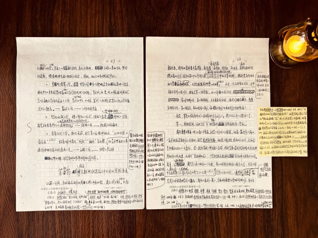 在动笔写讲义之前,我翻过好多中国思想史著作,从大部头的侯外庐,到薄薄的常乃惪,从只讲古代的杨荣国,到专讲当代的郭湛波,从德国的佛克(Alfred Forke),到日本的武内义雄,当然,也包括各种不叫思想史而叫哲学史的书,从胡适、冯友兰到任继愈。可我对这些著作都不太满意,觉得不能拿这些书当现成教材,只好自己从头写,往往是一边写一边讲,有时甚至前一天才写好讲稿,第二天就拿到课堂给学生讲。那时候还年轻,又正值小平南方谈话,各种新知也渐渐冒头,所以写的时候和讲的时候,不断会有新想法涌现。写好就讲,讲完再改,讲稿上贴满各色贴纸,无论在形式上、资料上以及观念上,离当时各种中国思想史或哲学史就越来越远。