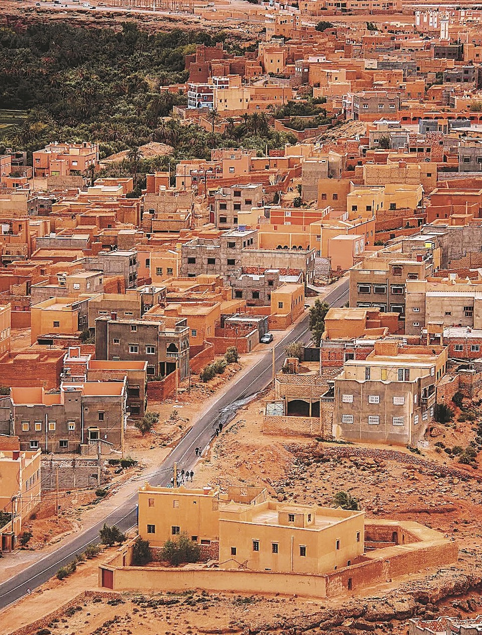 不止《卡萨布兰卡》,很多电影都是在摩洛哥取景。前往沙漠途中经过的阿伊特本哈杜筑垒村和瓦尔扎扎特堪称是摩洛哥的横店。阿伊特本哈杜筑垒村于1987年被评为世界遗产,《阿拉伯的劳伦斯》《角斗士》《权力的游戏》等影视作品都曾在此拍摄。瓦尔扎扎特还有供游客参观的电影城。当然,更吸引我的还是本地人的市井生活。在瓦尔扎扎特的酒店放好行李后,我走到城镇中心闲逛,广场中心围了一圈看表演的当地人。街道不算宽阔,两边支起了摊位,卖甘蔗汁、烤棉花糖、炸爆米花,像极了国内县城的春节景象。没能在国内过年,竟然在异国他乡收获了相似的体验。我买了一杯牛油果奶昔,伴着粉色的晚霞在天黑前回到酒店。