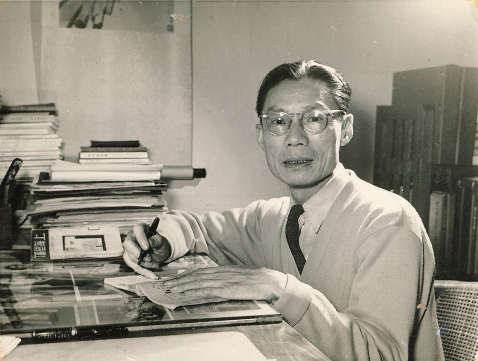夏衍在创作(桌上放着《上海屋檐下》的单行本)