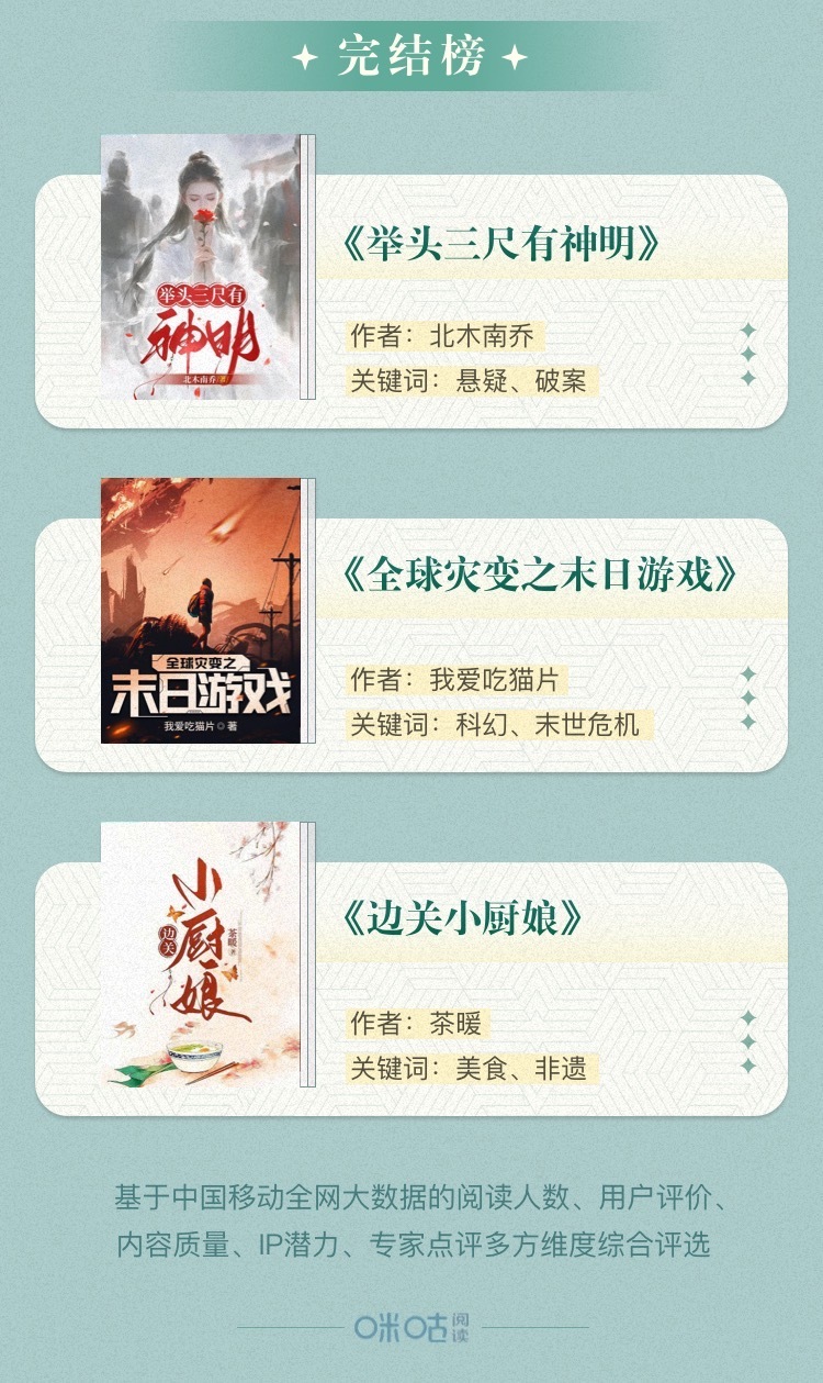 咪咕“悦读好书榜” 第十期揭晓,现实关怀与类型突破作品成焦点