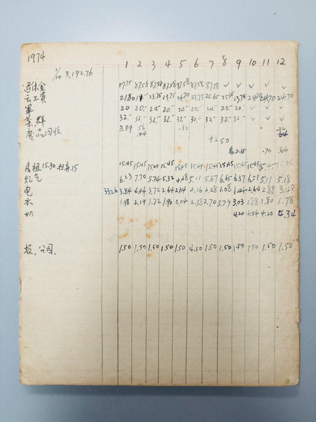 徐以楙一家1974年全年固定收支账簿