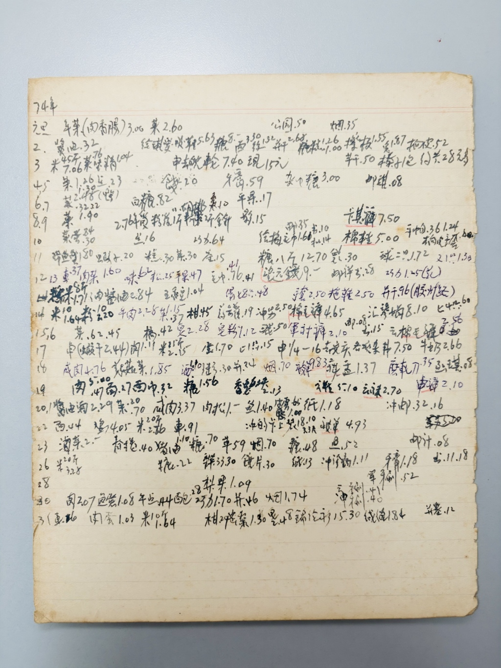 徐以楙一家1974年元月账簿