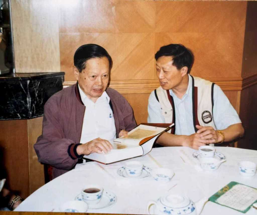 杨振宁非常之平易近人,和很多学者都是侃侃而谈。有一天,他打电话给我,让我去港岛的一家酒店的咖啡厅,原来他约了一位来自北京的画家张步见面,要我作陪。张步是北京画院的专职画家,他送给杨一本他的作品集,我当时翻看了,只感觉他的山水画与我平常见到的大不同,他的画别开生面,极有层次感,以浓艳绮丽为基调,对色彩特别注重。杨张二人也是第一次见面,但见他们聊得特别开心。杨曾经跟我说,他每到中国的一个地方,必定要看博物馆,我也有这样的习惯。因为博物馆可以开阔你的眼界,所有的展品都是经过几代人的努力,选取的有代表性的东西,从中可以得到许多历史知识和启示。有一年他去新疆,沈平就陪他看新疆的博物馆。杨从小就受到中国传统文化的熏陶,这和他的父亲也有关系,他不是学了物理,别的就什么都不管了,还有几件趣事可以佐证: