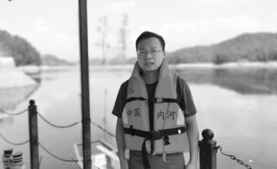 作家废斯人(匡彬)在天堂湖国家湿地公园巡湖