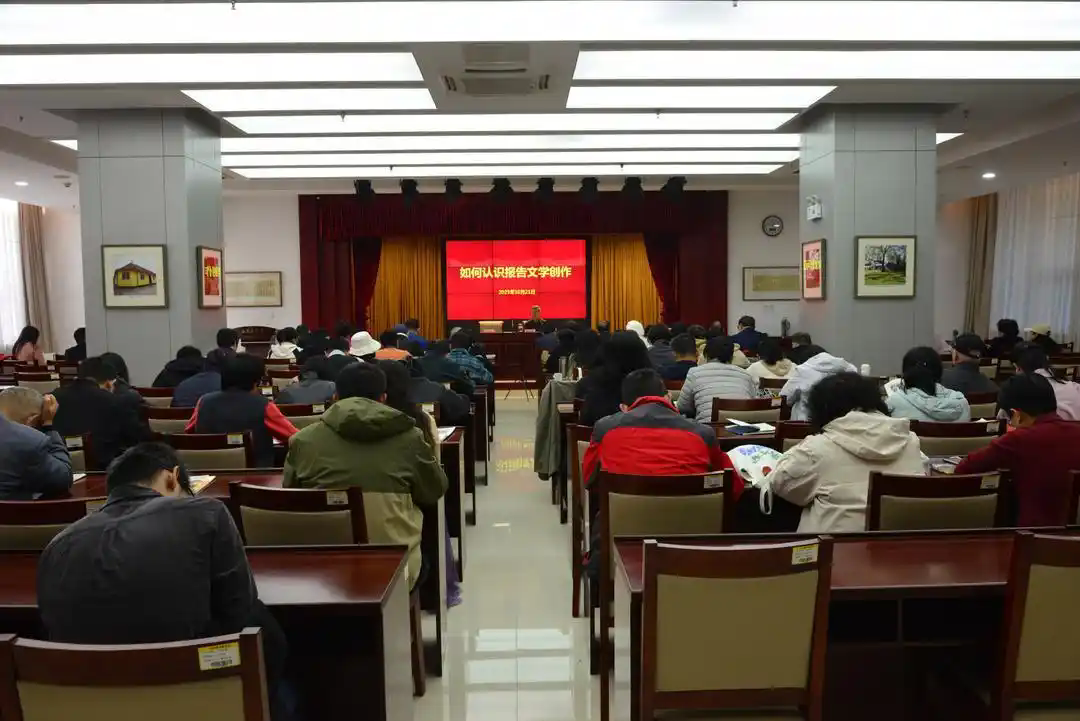 10月21日上午,山东省报告文学学会举办专题报告会,邀请中国报告文学学会常务副会长兼秘书长梁鸿鹰到济南作了题为《如何认识报告文学创作》的专题讲座。