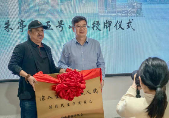当天下午,在风景独特的五号山谷,文学实践点授牌仪式率先举行。仪式由渌口区委常委、区委宣传部部长杨慧主持。区委书记李晓彤在致辞中表示,渌口区将以此次授牌为契机,全力为广大作家提供最优越的创作环境,期待作家们用生花妙笔描绘渌口风情,为区域发展注入强大的精神文化力量。随后,省、市、区三级代表共同签署了基地共建协议。在热烈的掌声中,省作协党组书记胡革平亲自将实践点牌匾授予五号山谷文化旅游集团董事长陈子墨,寄托了湖南文学界对扎根人民、书写时代的殷切期望。