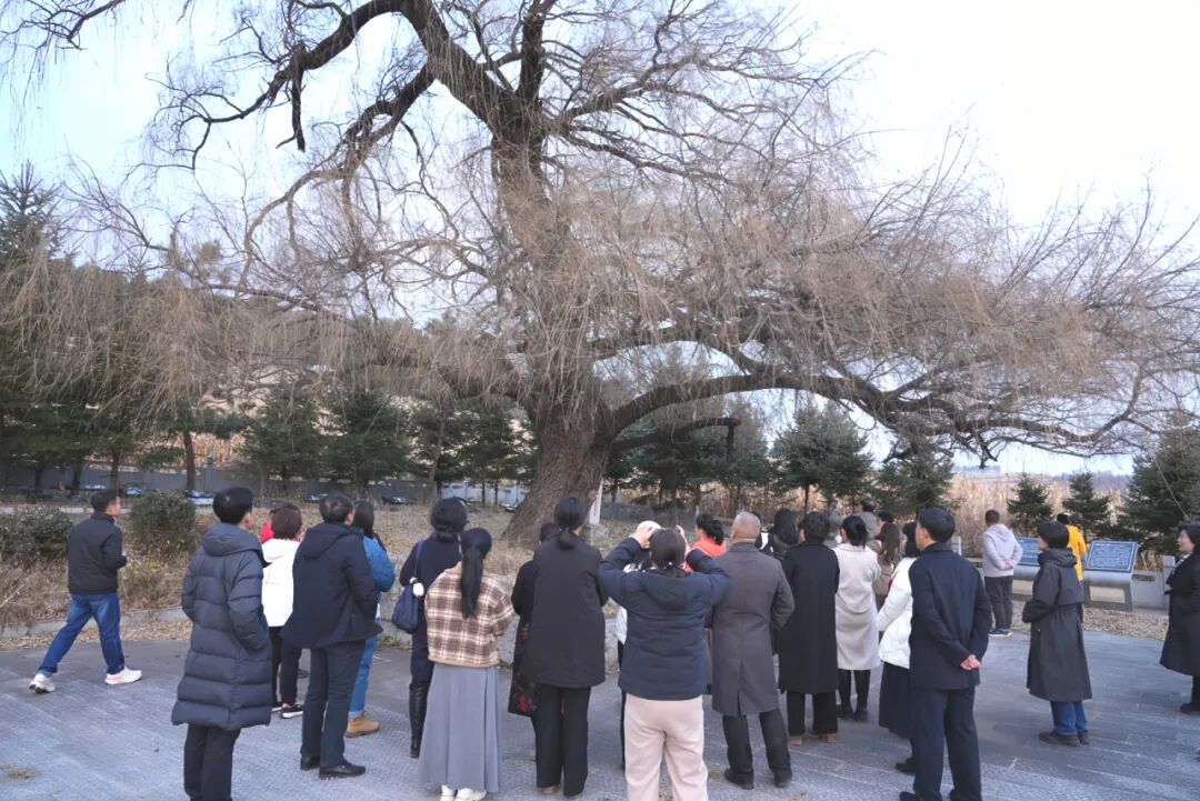 作家采风团到达龙井后,从G334龙东线起点——开山屯镇出发,先后抵达三合镇北兴村、三合村。在北兴村,一座历经140余年风霜洗礼的百年老屋,令作家们前往驻足。它不仅是时间的“见证者”,更是文化的“传承者”。在三合村,两棵挺拔的大叶黄杨,更是吸引了作家们的目光。它们已经扎根80载,如同两名忠诚的卫士,守护着祖国的边疆。