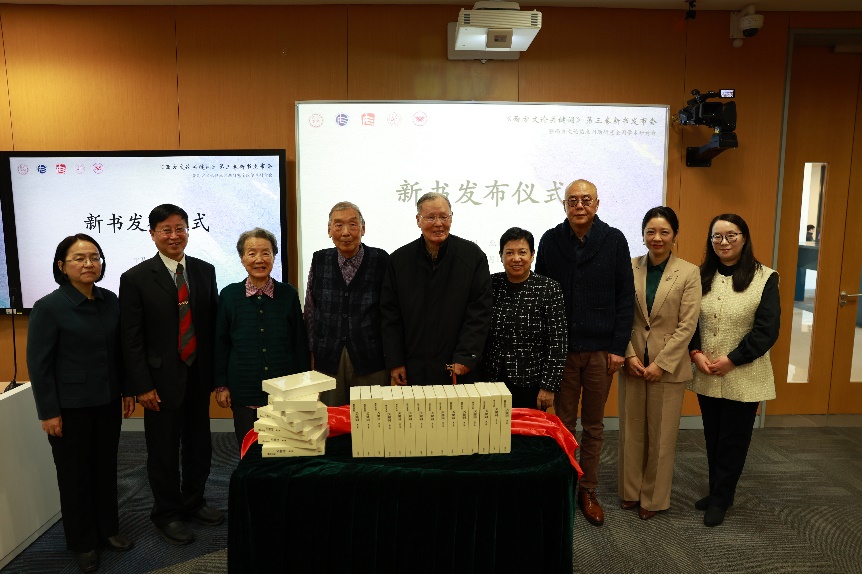 开幕式致辞结束后,张中载、刘意青、王逢振、殷企平、金莉、李铁、 陈方、邢印姝共同为新书揭幕,并合影留念。
