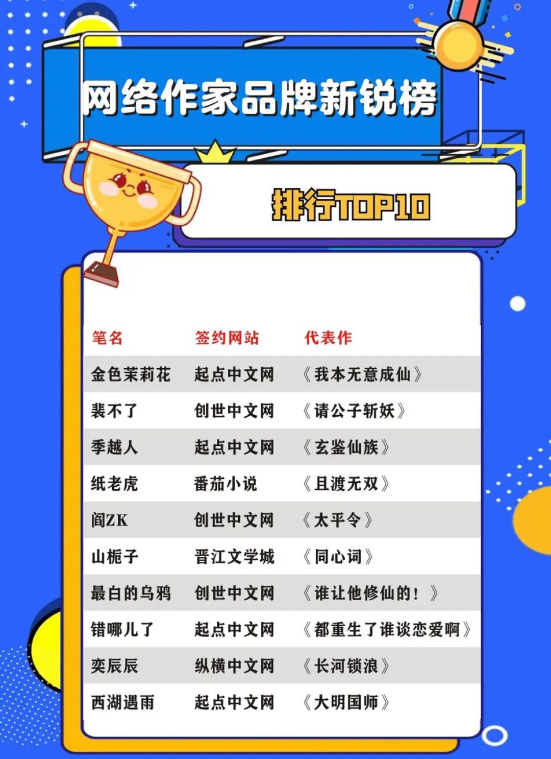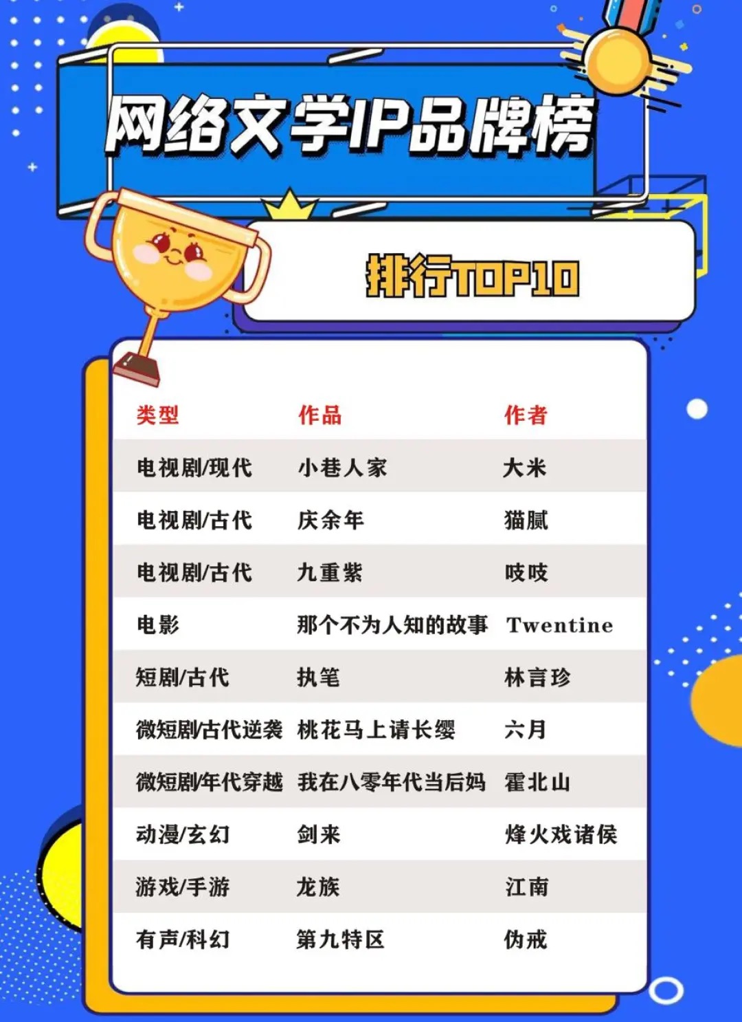 四大榜单揭晓,涵盖作家、IP与海外传播