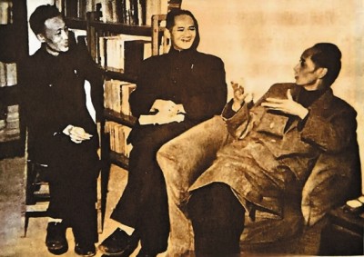 三位《诗刊》负责人在一起商谈工作。右起臧克家、徐迟、葛洛