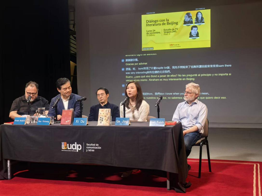 在智利迭戈·波塔莱斯大学,诗人西渡,作家葛竞围绕“地域特色塑造文学个性”“青年作家的创作困境与成长路径”等议题进行座谈分享。智利迭戈·波塔莱斯大学创意文学院院长阿尔瓦罗·比萨马,智利波塔莱斯大学教授、诗人、翻译家柯尔特·福熙以及该校师生出席活动并与作家积极交流互动。当地青年读者表示“从文字中感受到了北京真实的城市气息和温暖的人文关怀”。