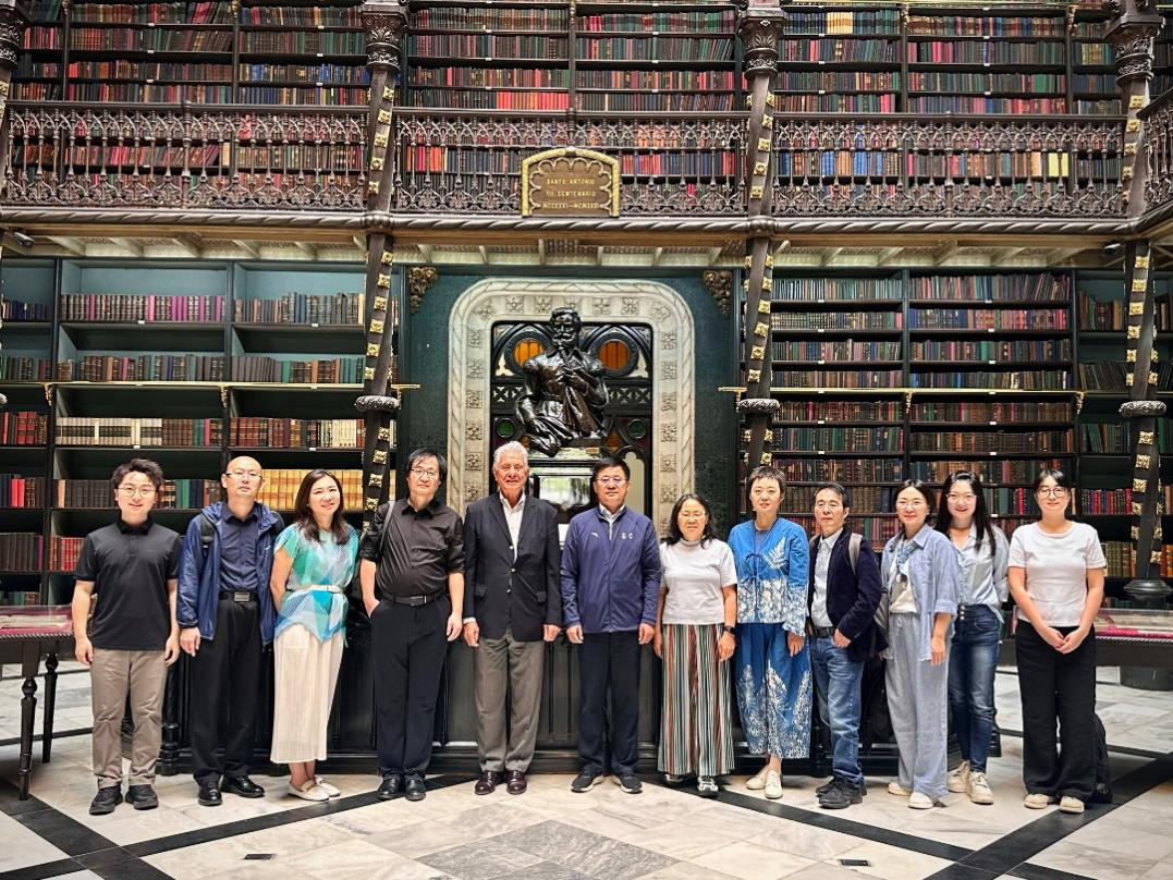 在巴西弗鲁米嫩塞联邦大学,代表团签署“北京国际文学院联盟”合作备忘录,为中拉文学常态化交流搭建重要平台,并举办“《老舍全集》等北京文学优秀作品走进巴西弗鲁米嫩塞联邦大学图书馆”赠书活动,将多部经典作品赠予该校图书馆,为巴西师生了解北京文学打开重要窗口。代表团还调研了里约热内卢皇家葡文阅览室,该机构是葡萄牙海外规模最大、最具价值的葡萄牙语图书馆之一。馆长弗朗西斯科·戈麦斯·达科斯塔表示,期待未来引入更多北京及中国主题的葡文作品,丰富馆藏资源,满足当地民众了解中国的需求。
