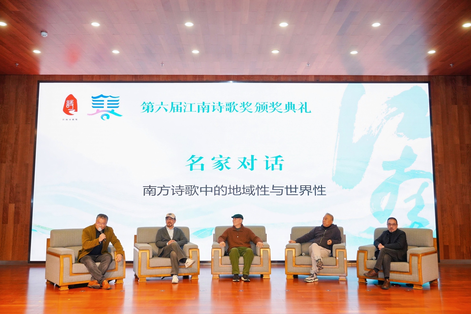 颁奖典礼现场还进行了名家对话,汪剑钊主持,张执浩、沈苇、宋琳、赵野四位嘉宾一起就“南方诗歌中的地域性与世界性”这一话题作了深入的探讨。