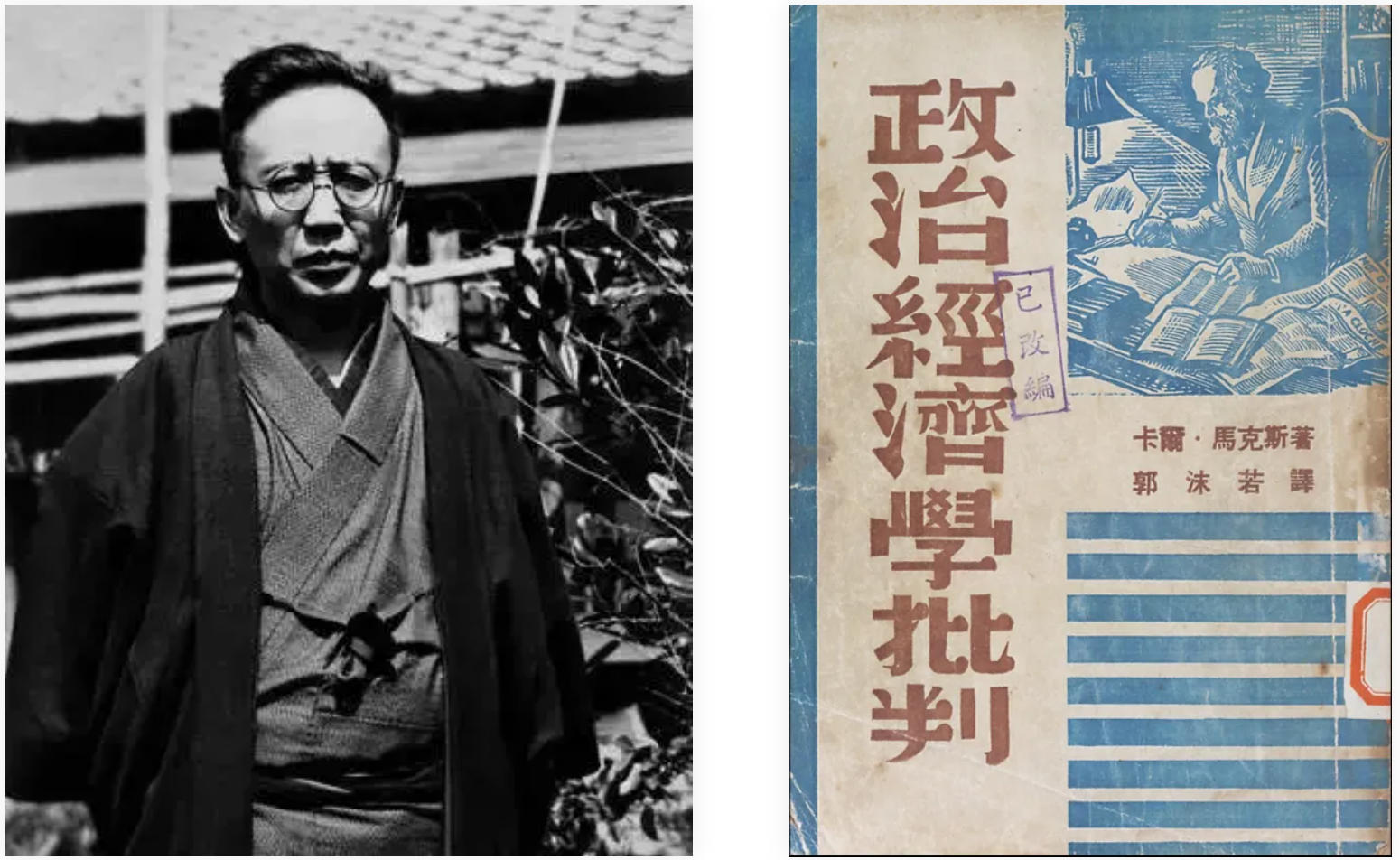 郭沫若流亡日本(左);郭沫若最终在流亡时期翻译了马克思的《政治经济学批判》手稿(右)