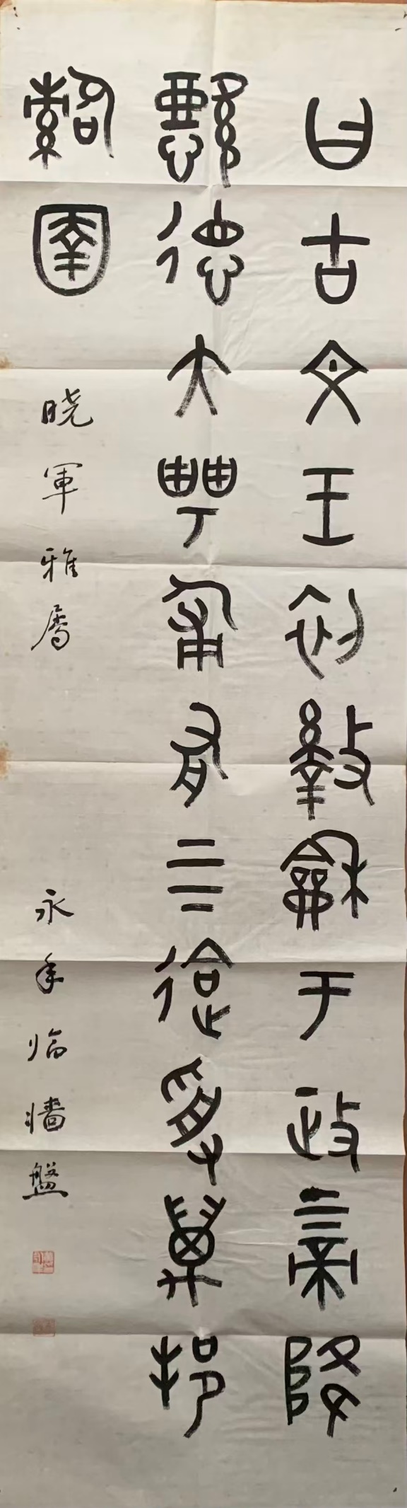 黄先生手书的这幅《墙盘铭》,早已成为寒舍书斋的镇斋之宝。见其如见先生,衷心感谢黄先生的赐墨及勉励。