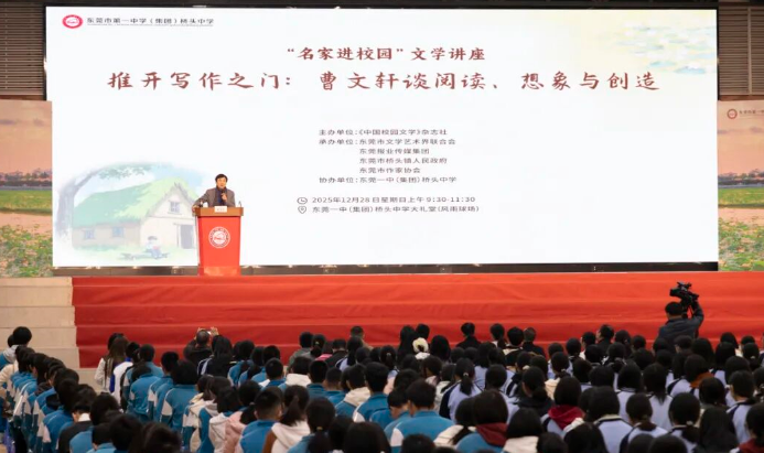 文学的未来在于青年,名家进校园活动同期举办。当天上午,曹文轩走进东莞一中(集团)桥头中学,以“推开写作之门:谈阅读、想象与创造”为主题,为师生们带来一场启迪心灵的讲座。曹文轩结合《草房子》《根鸟》等经典作品的创作经历,用生动的语言深入剖析了阅读积累、想象力培养与创作实践的关系。他鼓励同学们保持好奇心,从生活中发现美、感受情,勇敢地用文字表达自我。互动环节,学生们围绕写作困惑踊跃提问,曹文轩耐心解答,并寄语青少年“以阅读为舟,以想象为帆,在文学海洋中勇敢航行”。