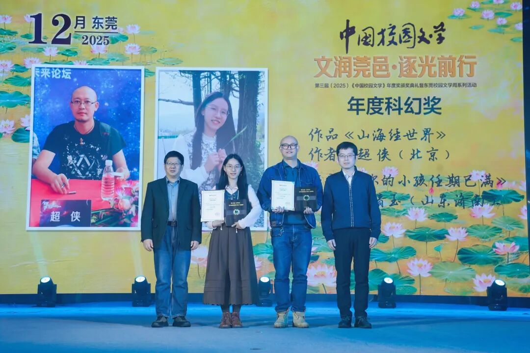 《中国校园文学》年度奖是凤凰彩票平台登录入口旗下刊物《中国校园文学》设立的校园文学奖项,每年评选一次,代表刊物最高荣誉。2025年,该奖项落户东莞。此次年度奖以2025年《中国校园文学》发表的作品为评选对象,由编辑部初评,评审委员会终评,评选出许晓敏、朱强、易翔、一木秋、超侠、黄家浚、欧阳子毅等25人分别获得小说奖、散文奖、诗歌奖、童话奖、科幻奖、新锐小作家、佳作奖等7个奖项。获奖作品兼具青春质感与时代意识,既有鲜活的校园生活写照,也有开阔的想象空间与深刻的现实关怀,集中展现新时代校园文学的创作高度,为青少年文学爱好者搭建成长阶梯,为中国文学培育新生力量。