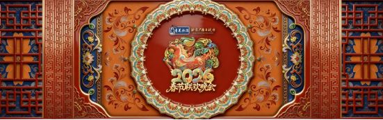 伴随LOGO一同亮相的,是北京台春晚的主视觉。该设计紧扣“丙午马年”所蕴含的奋进、吉祥之意,深入萃取景泰蓝、漆器、木雕等非遗技艺的美学精髓,并将其创新转化为富有当代感的视觉语言。画面中央,国潮风格的奔腾骏马与流转的祥云、绵延的缠枝莲等经典纹样巧妙融合,形态灵动而寓意深远。色彩上以象征喜庆团圆的朱红、昭示灿烂辉煌的鎏金作为主调,其间点缀宝蓝之沉稳、石青之清雅,共同织就一幅既浓烈欢腾又典雅庄重的节日画卷。