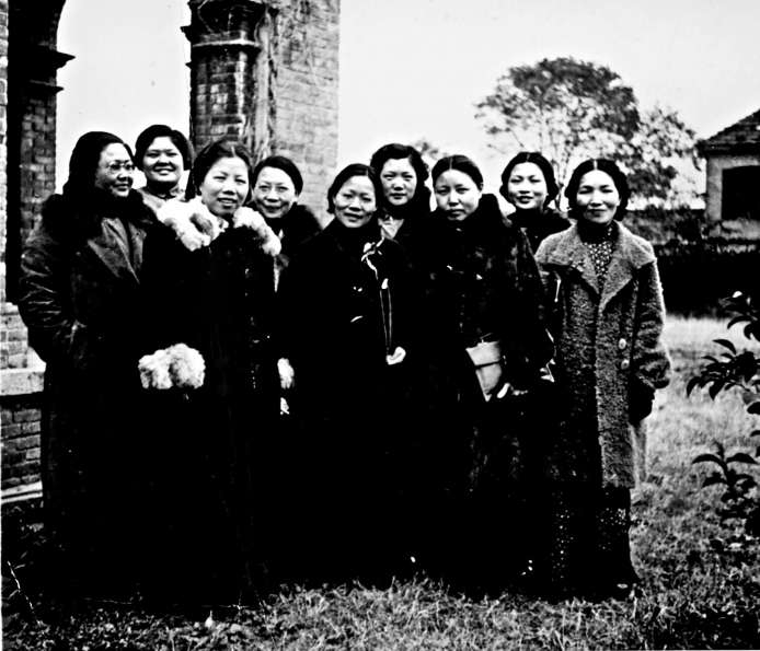 1938年1月筹备成立战时儿童保育会时的合影。从左至右依次为李德全、冯弗伐、邓颖超、唐国桢、陈纪彝、安娥、刘清扬、郭秀仪、谢兰郁。